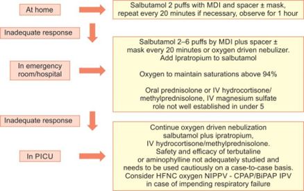 · Till 4 years: Metered-dose inhaler (MDI) + spacer + mask or nebulizer in hospital setting